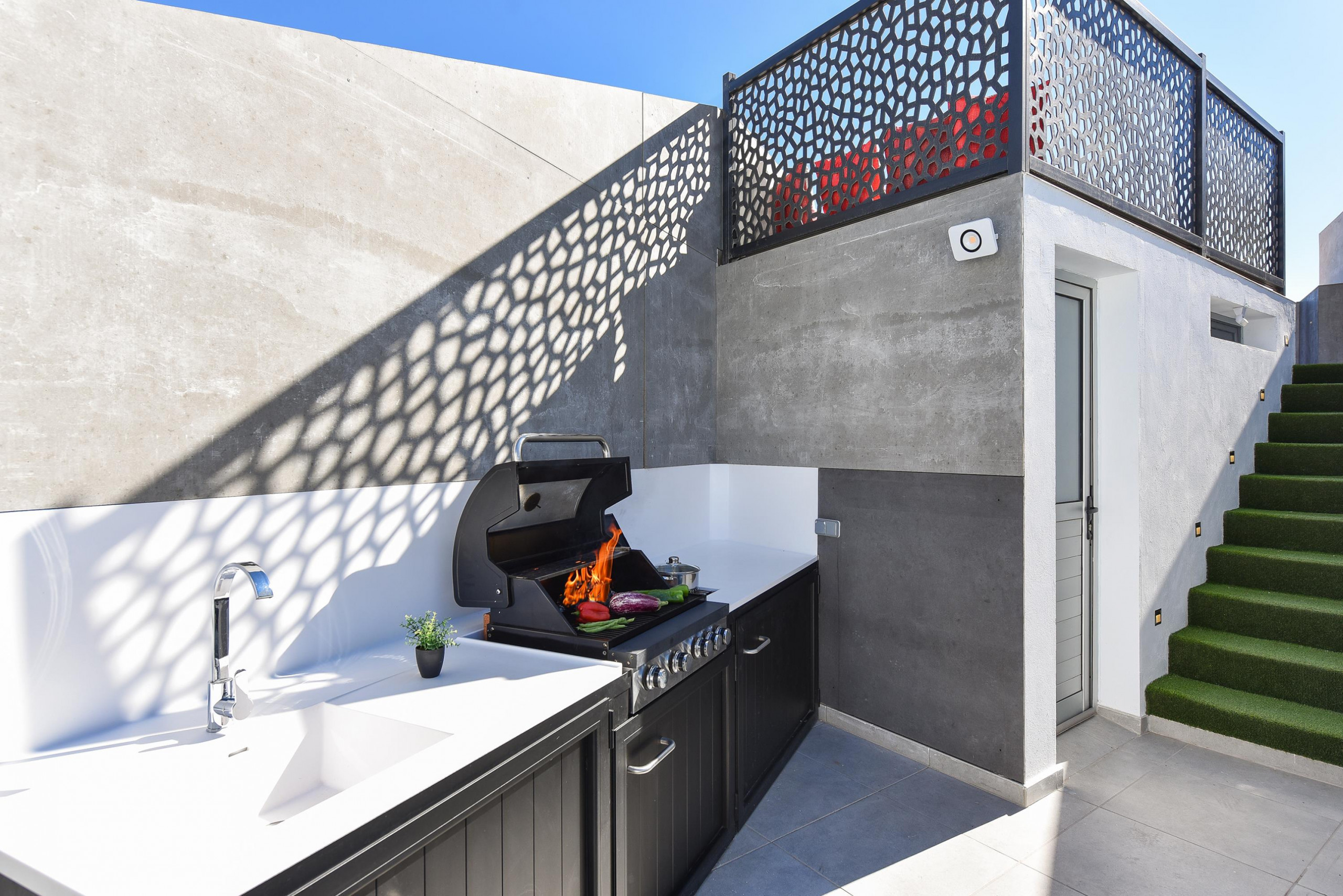This vacation home is wonderfully light and spacious. The spacious living room has a comfortable sofa and a large Smart TV with international TV channels. The open kitchen is fully equipped including an induction hob, freezer, fridge, oven and microwave. Large French doors lead you to the nice terrace of Villa Moderno.