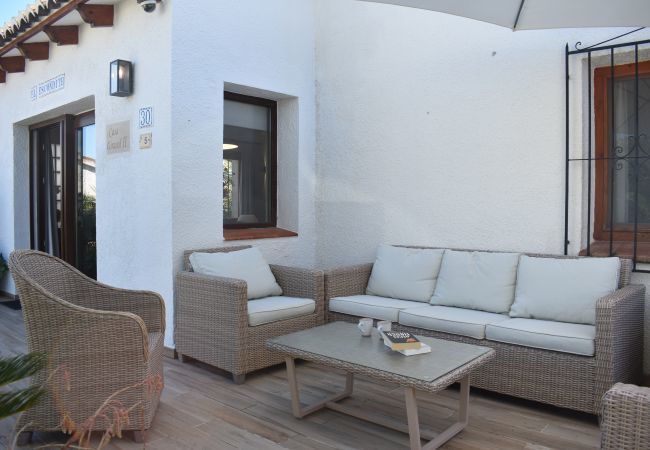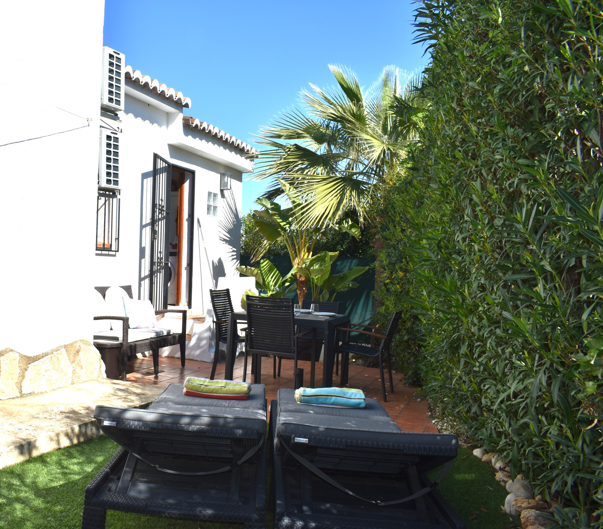This is what you call the kind of holiday home you discover by word of mouth. It is pleasantly small-scale! Holiday home Casa Girasol is a detached, well-maintained single-story home. At the front of the house, there is a garden/terrace equipped with a comfortable lounge set; at the back of the house, there is also a small garden with 2 nice sun loungers and a dining table for breakfast in the shade. The green street (2 minutes long) is light and bright. Restaurants, shops, and the beach are within easy reach. Moraira is a traditional Spanish fishing village with many cozy squares and terraces.