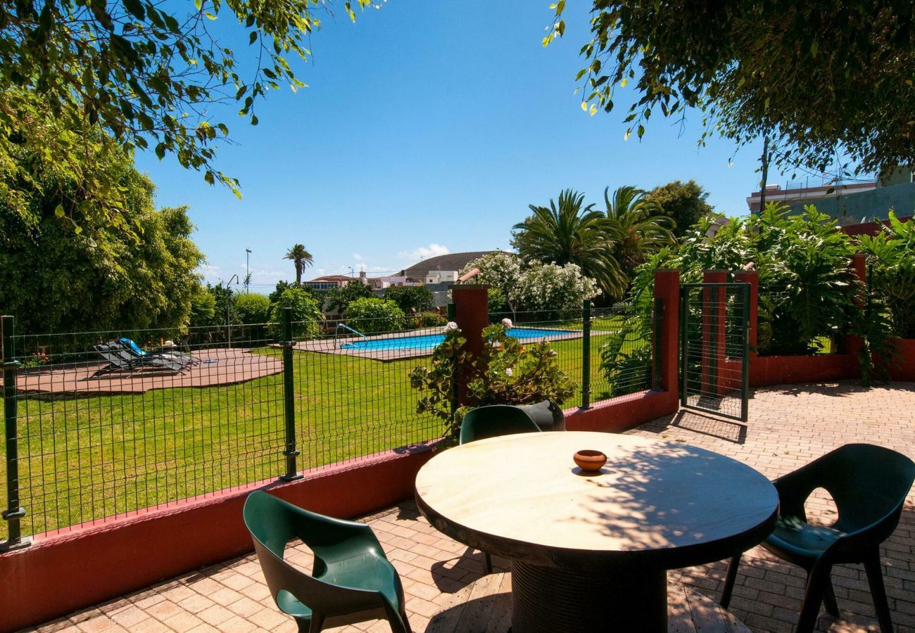 We rented this villa for remote work and also as a base for our trips around the island. So we were looking for place suitable for bigger group of people working/coding/be on calls, with enough space and good internet. We found most of it here and enjoyed ourselves a lot! Plenty of outside and inside common areas to sit together to eatwork. Two main bedrooms with double beds were full of light and good for some privacy for workchill, two smaller bedrooms with single beds were bit darker with no natural light so it was used mainly for sleeping but colleagues had other options to find a nice spot around the vila to work. Very nice was outside seating zone around the grill and we used a tennis court as well. Garden was beautiful and I am pretty sure we would use it more including the pool if the weather would be a bit warmer. We also got a tour around the property to learn about banana fields from the owners and we recommend you to do it too. The owner sat down with us afterwards and recommended places and restaurants to visit. When it comes to the location, please be prepared that it is not located in city centerin some busy entertaining city full of night life and it is not very “walking” friendly. In this area it is common to get around by car/scooters, so definitely rent a car for your trips/shopping/dining. There are no pavements, only zigzag narrow roads and it did not feel the safest for walking/running. If you’re looking for a nice clean well equipped place for bigger group of friends/colleaguesfamily, this is your spot. Enjoy as we did