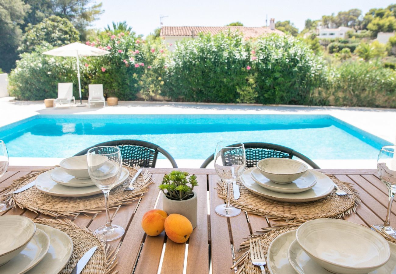 This holiday home of Belgian owners is a lovely detached holiday home with private pool is Villa Domingo in Benissa, located right next to Moraira (15 minutes by car). A big advantage is without a doubt that the villa is completely on one level. Everything is within reach which gives a good and clear feeling. You will experience an optimal holiday experience partly due to the great covered outdoor kitchen and the greenery around you.