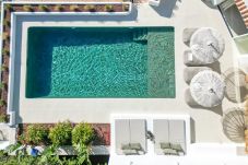 Through the automatic entrance gate, you reach the parking area and spacious garage (with 2 washing machines and dryer). From the parking area, you reach the main entrance via stairs. Here you will find the living room, dining table, open kitchen with bar. The luxury kitchen is equipped with, among other things, large refrigerator, drinking water tap, freezer, combination oven, induction hob and Nespresso coffee machine. There is also a guest toilet and two bedrooms. Bedroom 1 and 2: 2 single beds (90x200). An open staircase in the living room leads you to bedroom 3: the master bedroom with double bed (180x200) and spacious balcony. All bedrooms have their own bathroom with shower and toilet, window screens, blackout Luxaflex and high-quality mattresses. From both 2 bedrooms and the kitchen, you can directly access the terrace that leads to the swimming pool.