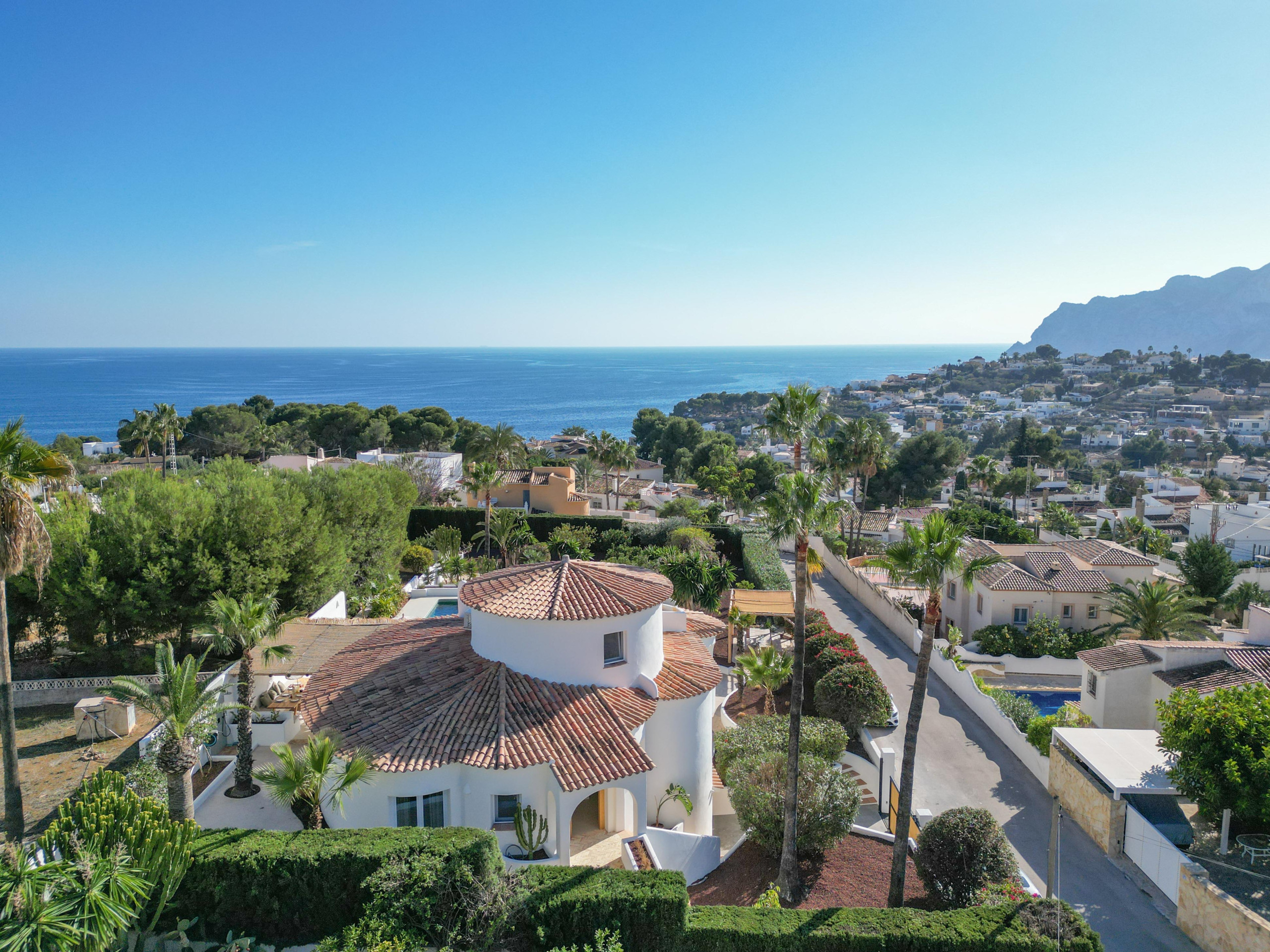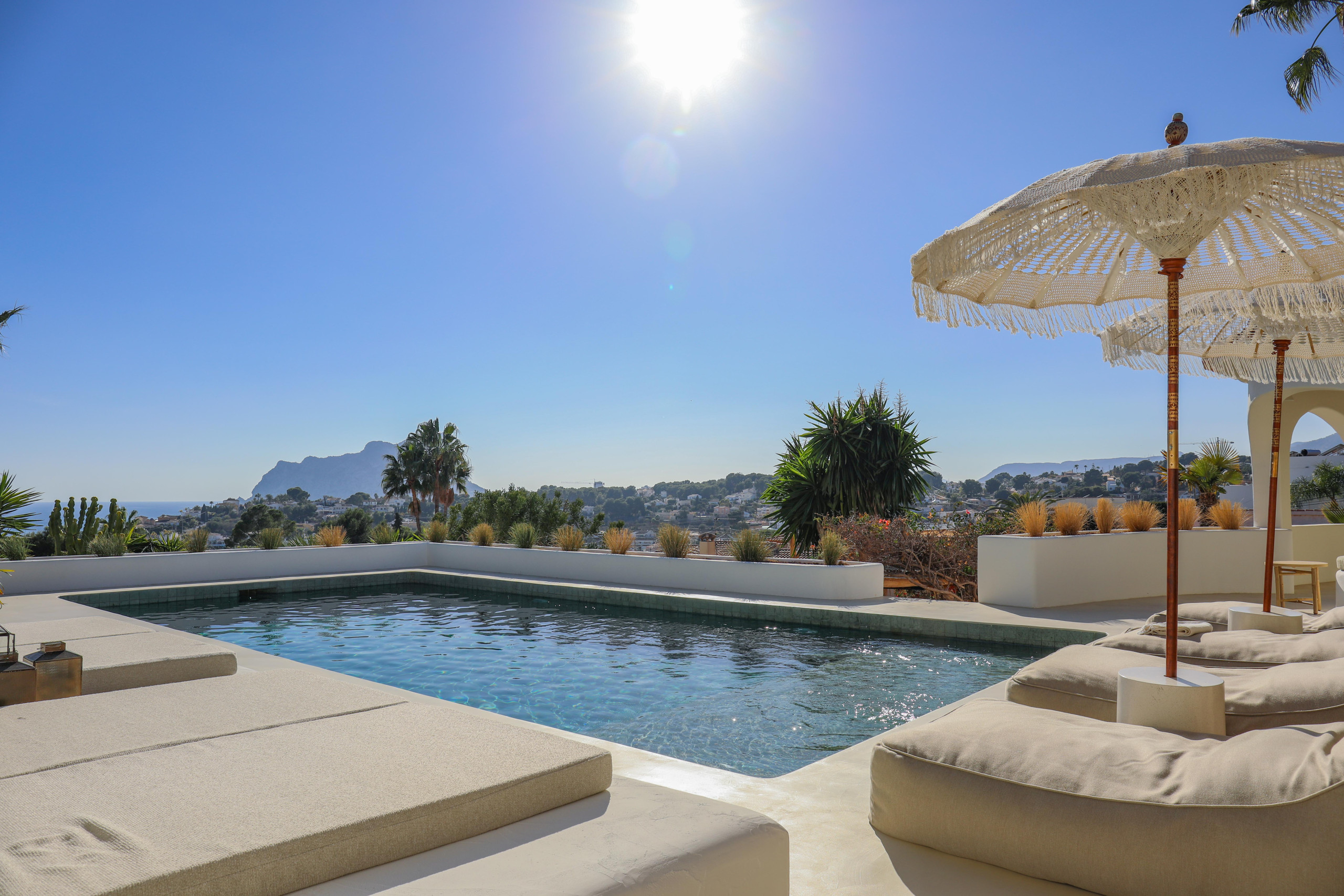 Villa La Madrugada offers phenomenal views of the Mediterranean Sea and the imposing Peñon de Ifach, rock of Calpe, from various terraces and spots.