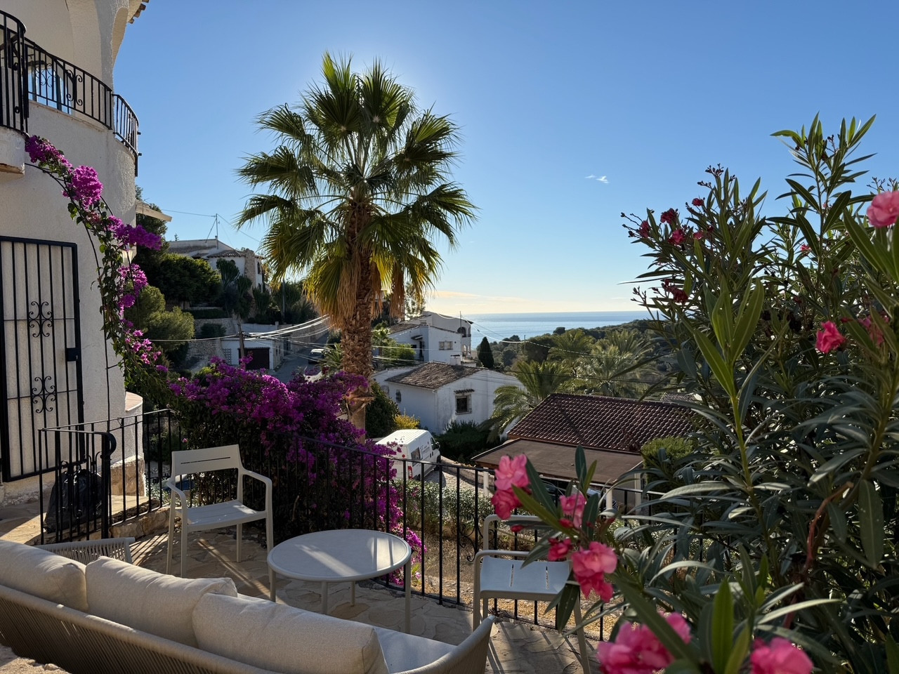 We are delighted to present this charming property with sea views (!) in our portfolio. It’s only a 15-minute walk to the sea for swimming and snorkelling, and about a 20-minute walk to the bay of Caleta de l'Advocat, where you’ll find a lovely terrace open all year round for food and drinks. Villa Benissa Blanca is a typical Spanish villa located in a quiet neighbourhood and equipped with all modern conveniences. It is a detached villa with 3 bedrooms, 2 kitchens, 2 bathrooms, a private swimming pool and several terraces surrounding the villa.