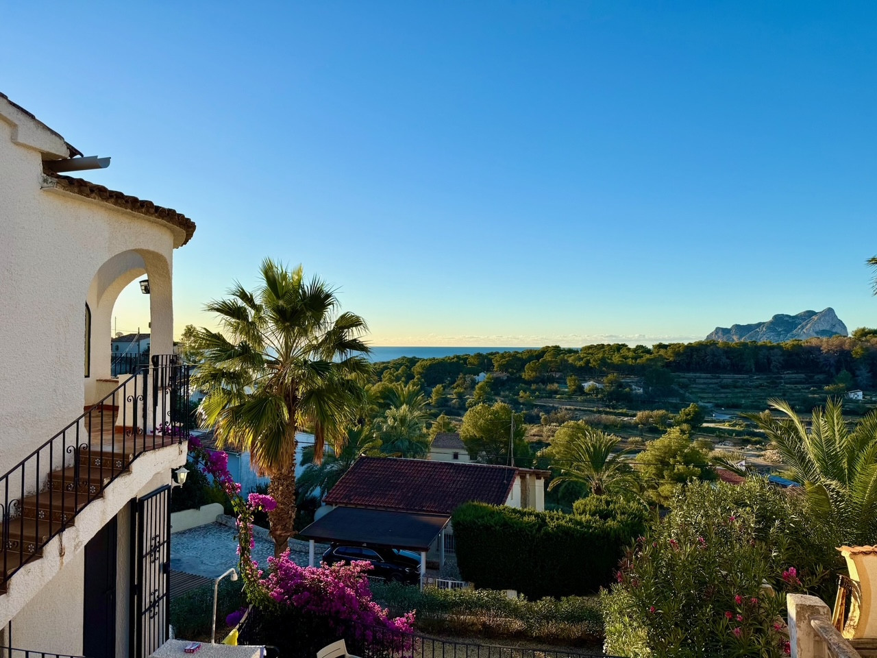 Walking to the sea takes approximately 15 minutes. Please note that the return journey will take longer due to the sloping road. Pebble beach 1.2 km, sandy beach 1.7 km (Playa la Fustera), shops (Calpe 5 km, Moraira 3.5 km), supermarket 1.5 km, restaurant 1.3 km, Alicante airport 92 km, Valencia airport 127 km.