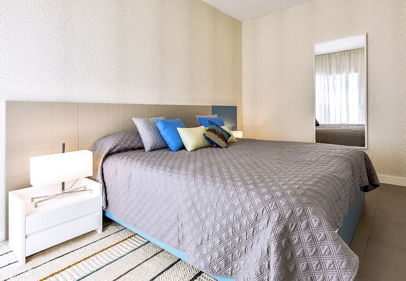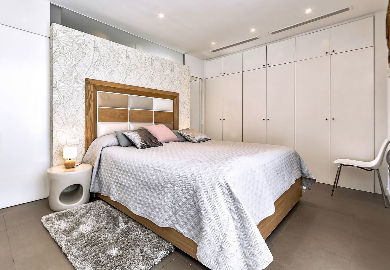 On the first floor is the master bedroom with a double bed and ensuite bathroom with walk-in shower for two persons, a double sink and toilet. From this bedroom you have direct access to the spacious outside terrace.