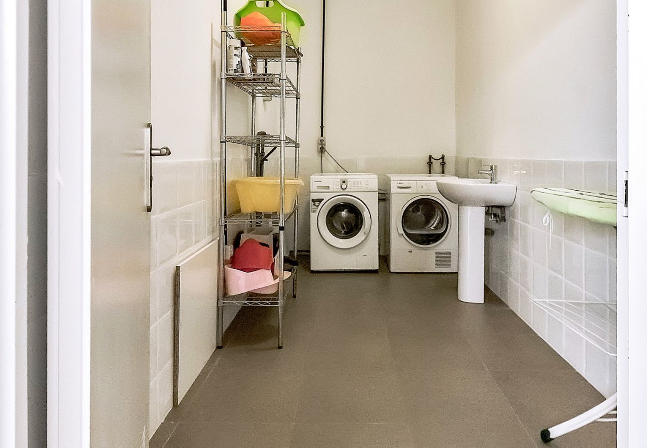 A small staircase takes you to the area of the villa (300 m2). When you open the large wooden front door, you enter the very spacious modern kitchen that is fully equipped; a dishwasher, oven, 4-plate electric hob, microwave, toaster, Nespresso machine and an American fridge with freezer. A nice detail: from the window in the kitchen you see immediately the garden and the swimming pool.