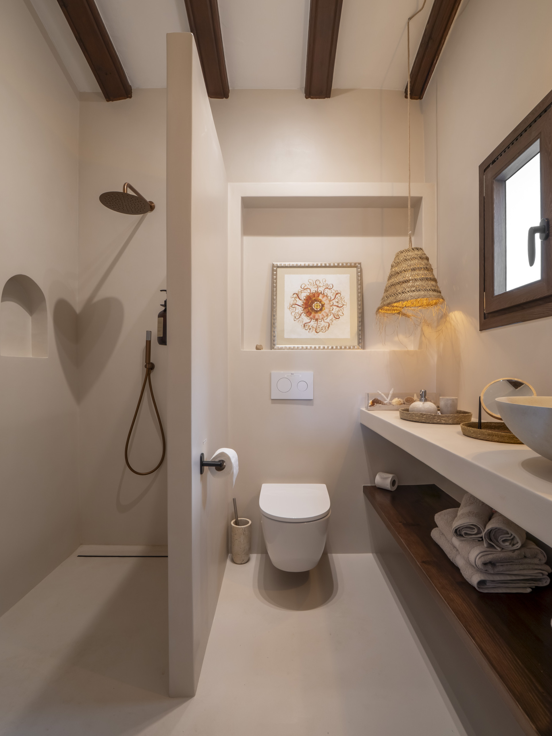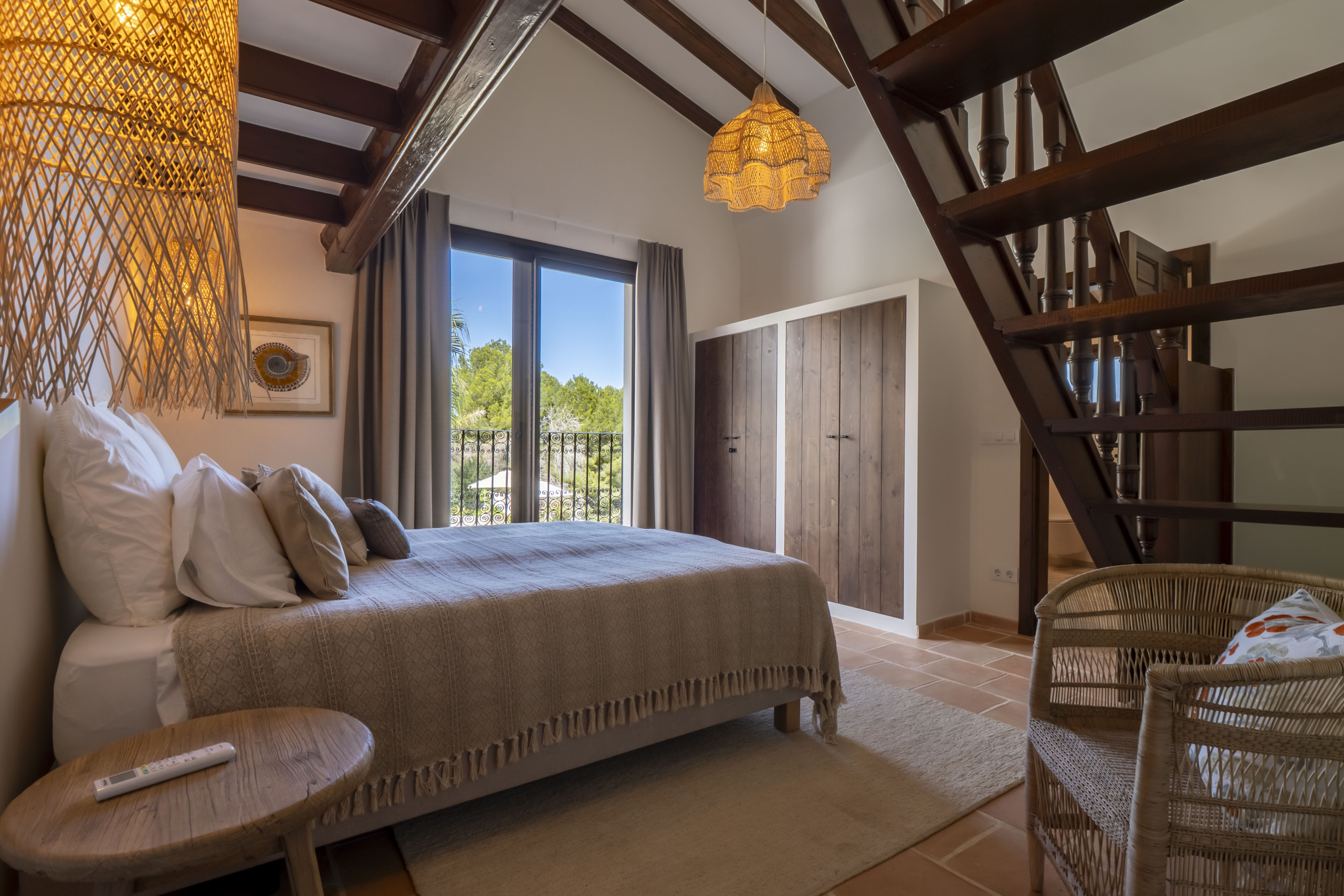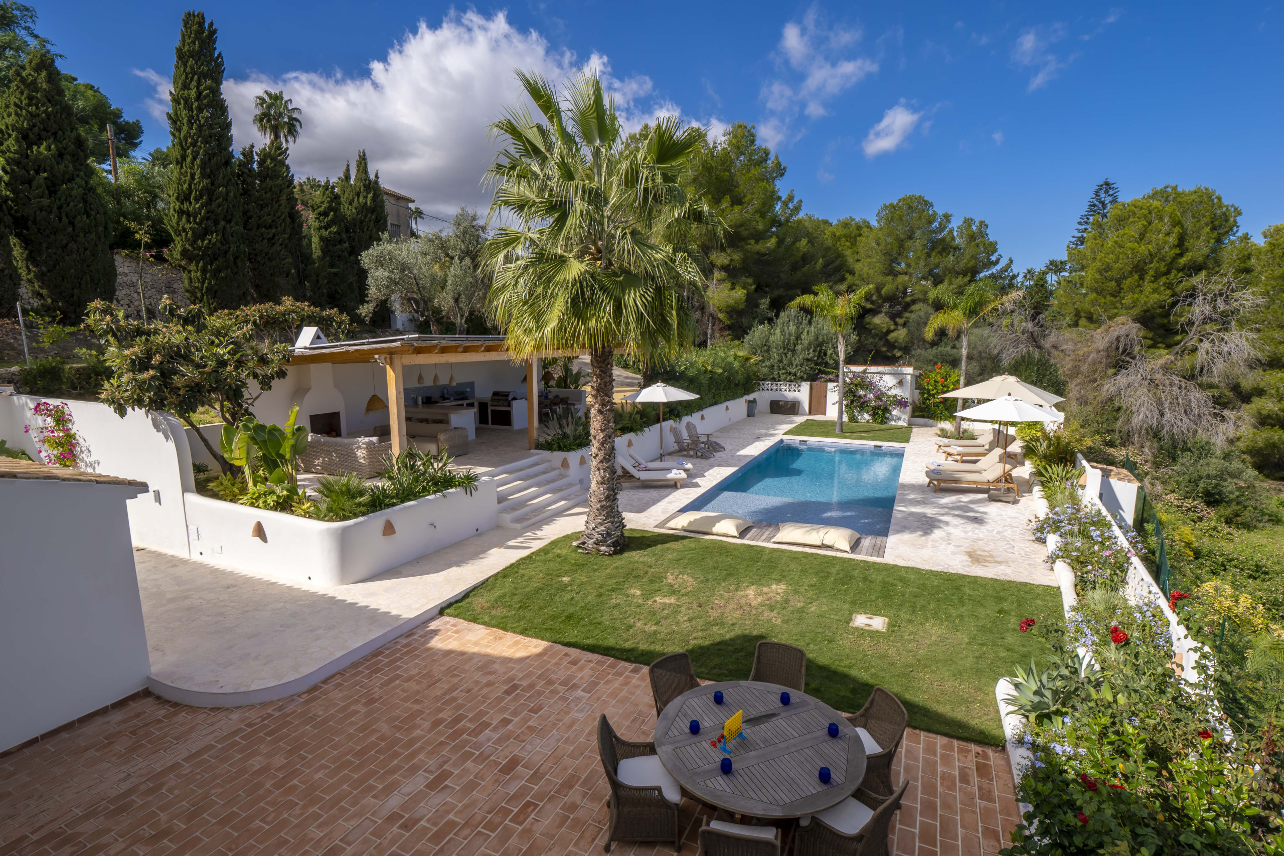 What a lovely outdoor life! The garden of Finca Genciana is spacious, green and beautifully landscaped with a wide view of the surroundings and the sea in the distance. Centrally located is the private swimming pool (5 x 11 m, up to 2 m deep), surrounded by six sun loungers and an outdoor shower. In the garden house you'll find a complete outdoor kitchen with bar, refrigerator, barbecue and a dining table for 10 people. A nice place to enjoy the view and the silence until late in the evening. Parking is available on the property, with space for six cars.