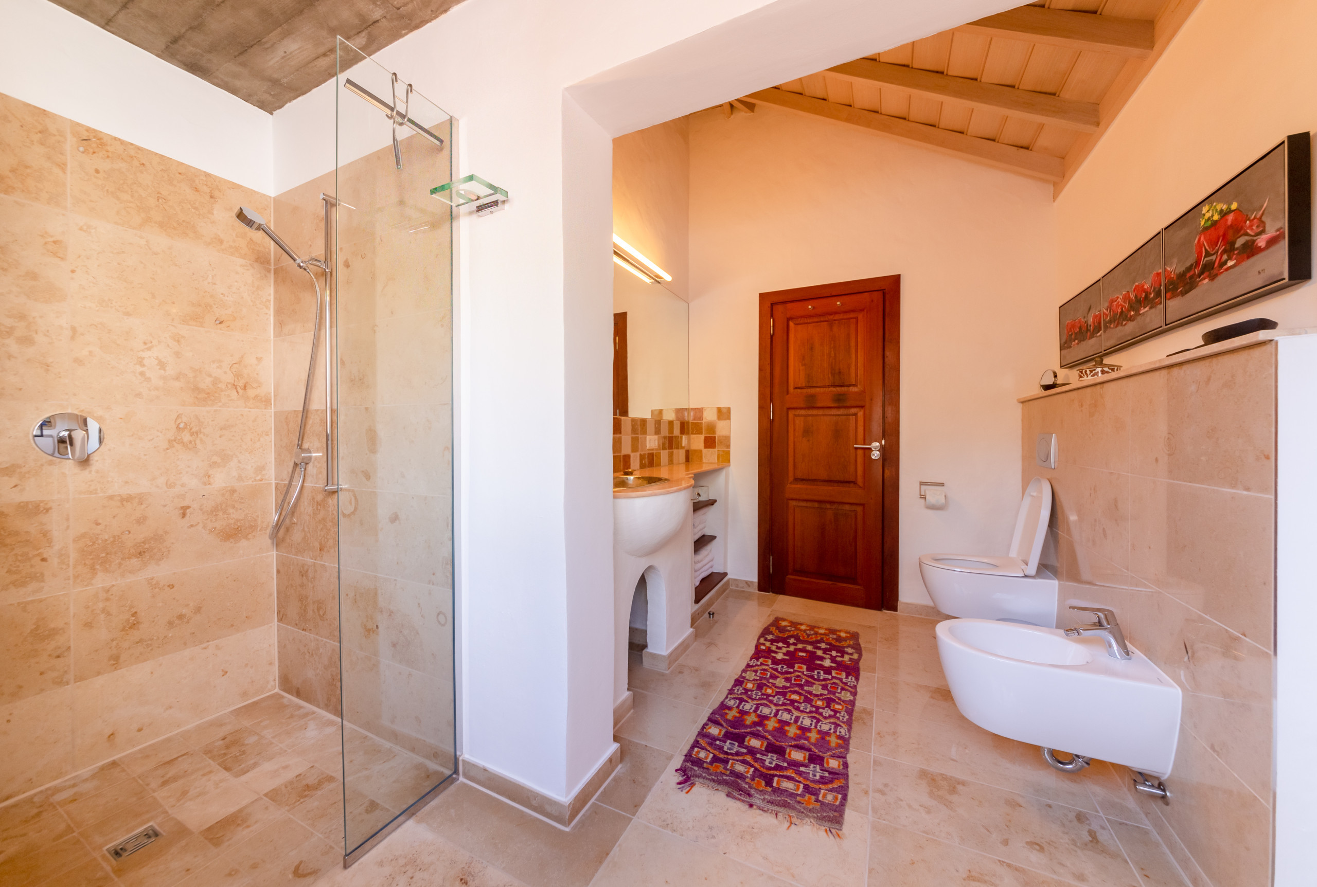 The kitchen is equipped with, among other things, a 4-burner gas stove, refrigerator, freezer, oven, coffee maker, kettle, dishwasher and sufficient kitchen utensils. The bedroom has a double bed and French doors leading to the terrace. The bathroom is equipped with a shower, toilet and sink. It is lined with old travertine marble and handmade tiles from Fez. The metal sink is handmade in Marrakech and provides an oriental atmosphere. Underfloor heating is also present in the bathroom. A washing machine is also available.