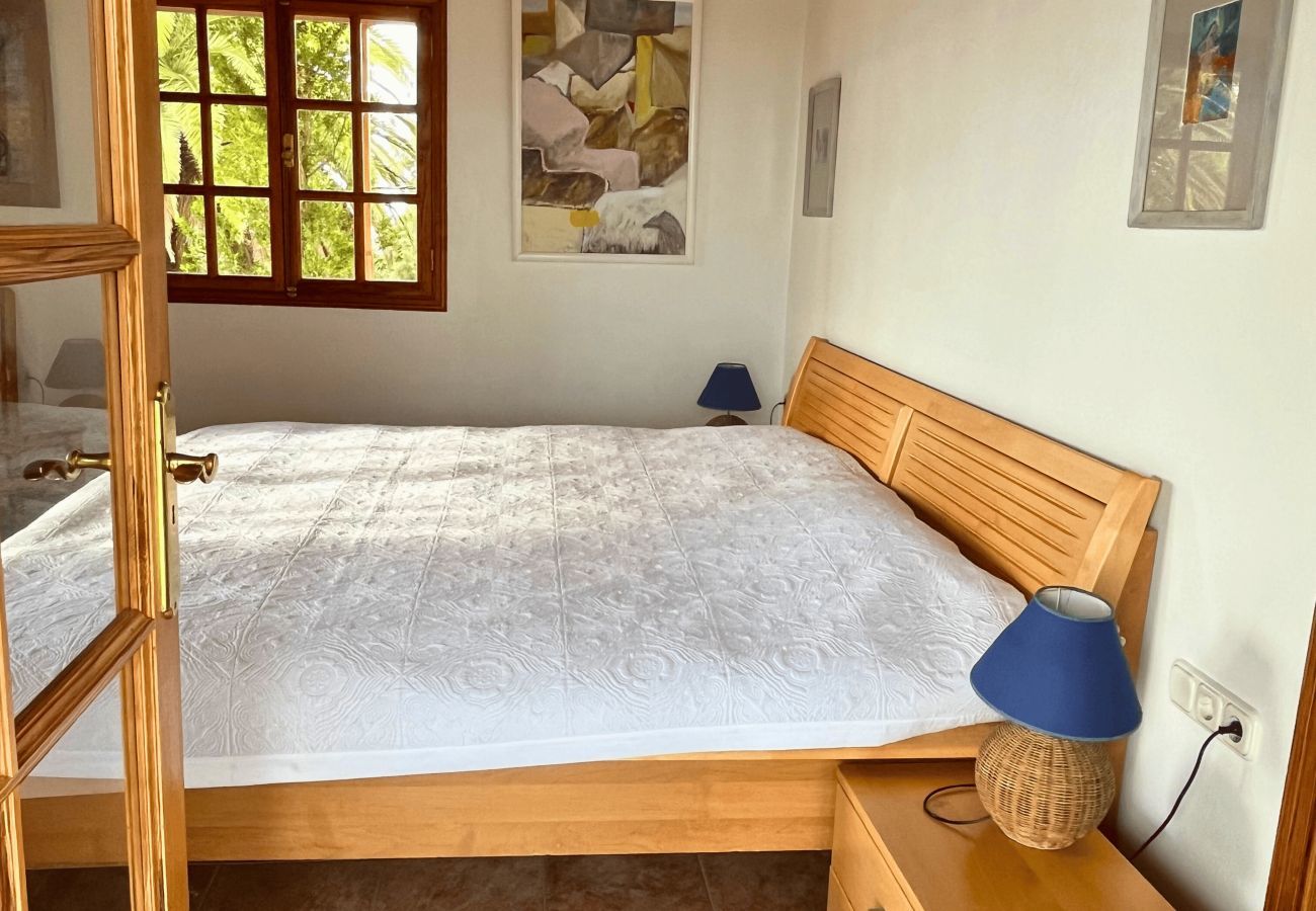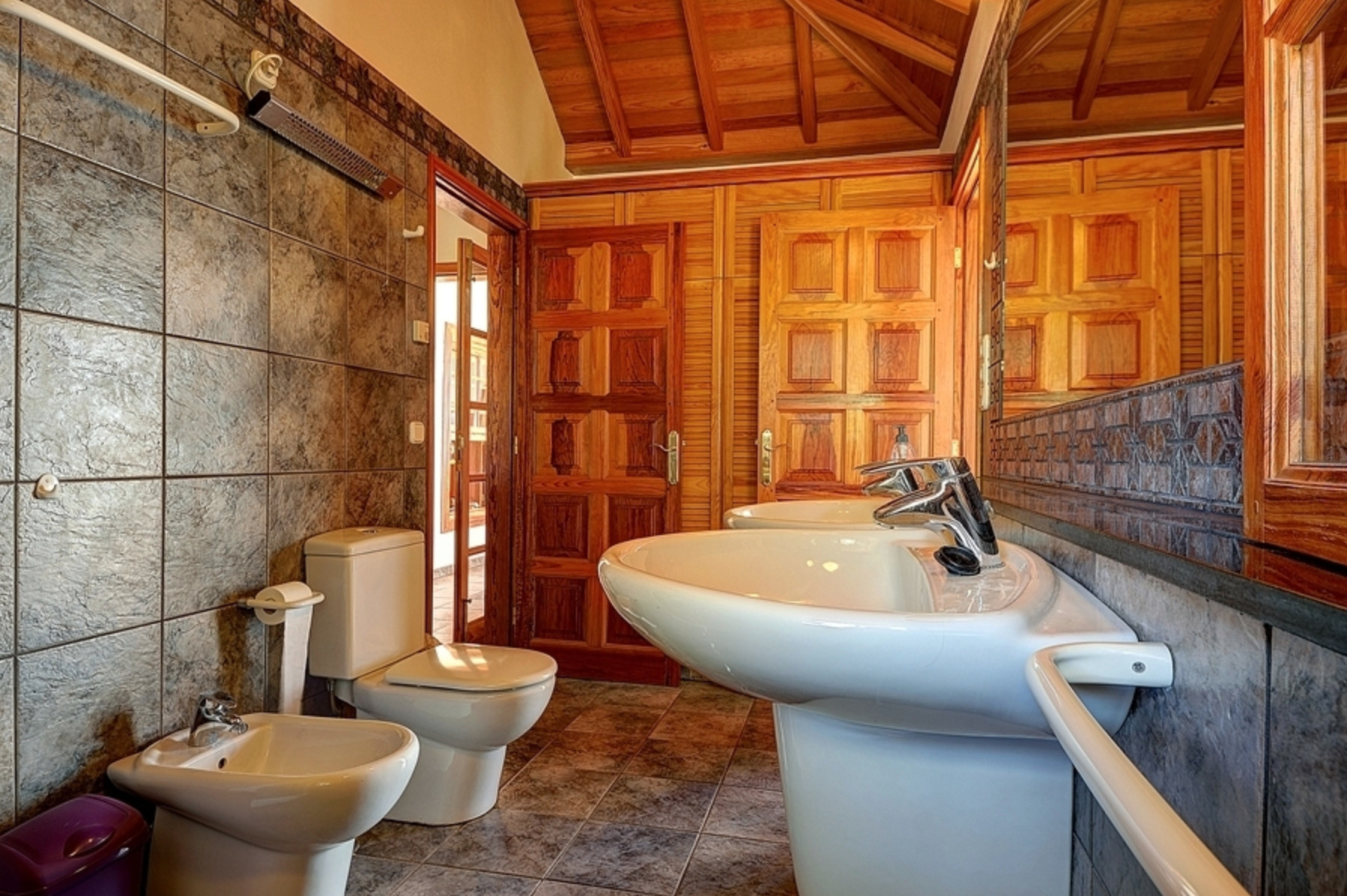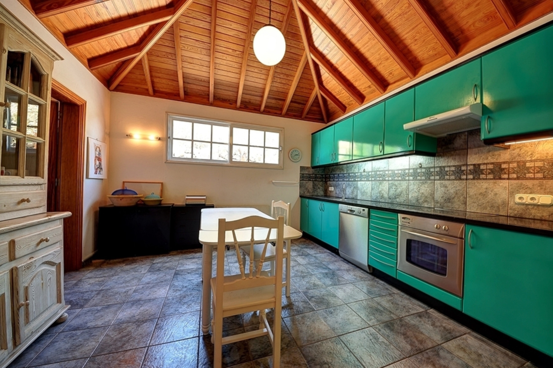 The entire villa is on one level. The two-part living room is equipped with a bookcase, two sofas, a luxury armchair, a stereo system and a satellite television. From the living room, you can directly step out onto the outdoor terrace. Here you have a beautiful view of the sea. The kitchen is equipped with, among other things, a dishwasher, 4-burner electric hob, refrigerator with freezer compartment, oven, microwave, Nespresso machine, coffee maker etc. Finca Tijarafe has two bedrooms and two bathrooms. Bedroom 1 has a double bed and French doors to the outside. There is also a bedroom 2, which is equipped with two single beds. Both bathrooms have a shower, two washbasins, a hairdryer and a toilet. There is also a washing machine. Finca Tijarafe has its own driveway and private parking and the entire villa is equipped with wifi and underfloor heating.