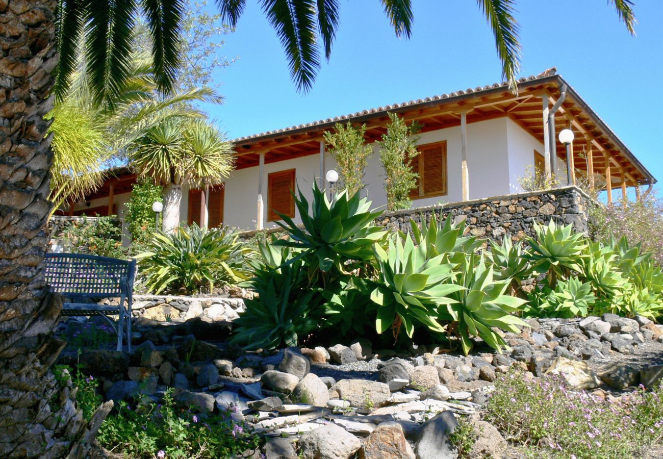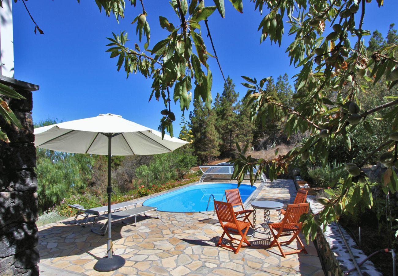 This lovely holiday home with a heated private swimming pool and phenomenal sea view is located near the village of Tijarafe. In the enormous garden of 4,000 m2, you can look out over tropical flowers and palms and pick fruit from the almond, mango, and olive trees. Further in the garden is the heated private swimming pool. If you feel like going out, you can reach the seaside resort in Tazacorte within 20 minutes by rental car. Here you will find a beautiful lava beach with a fishing harbour. Against the background of the deep blue sea and black sand, the cheerfully coloured houses stand out. On the boulevard, you can enjoy atmospheric (fish) restaurants, bars, and shops.