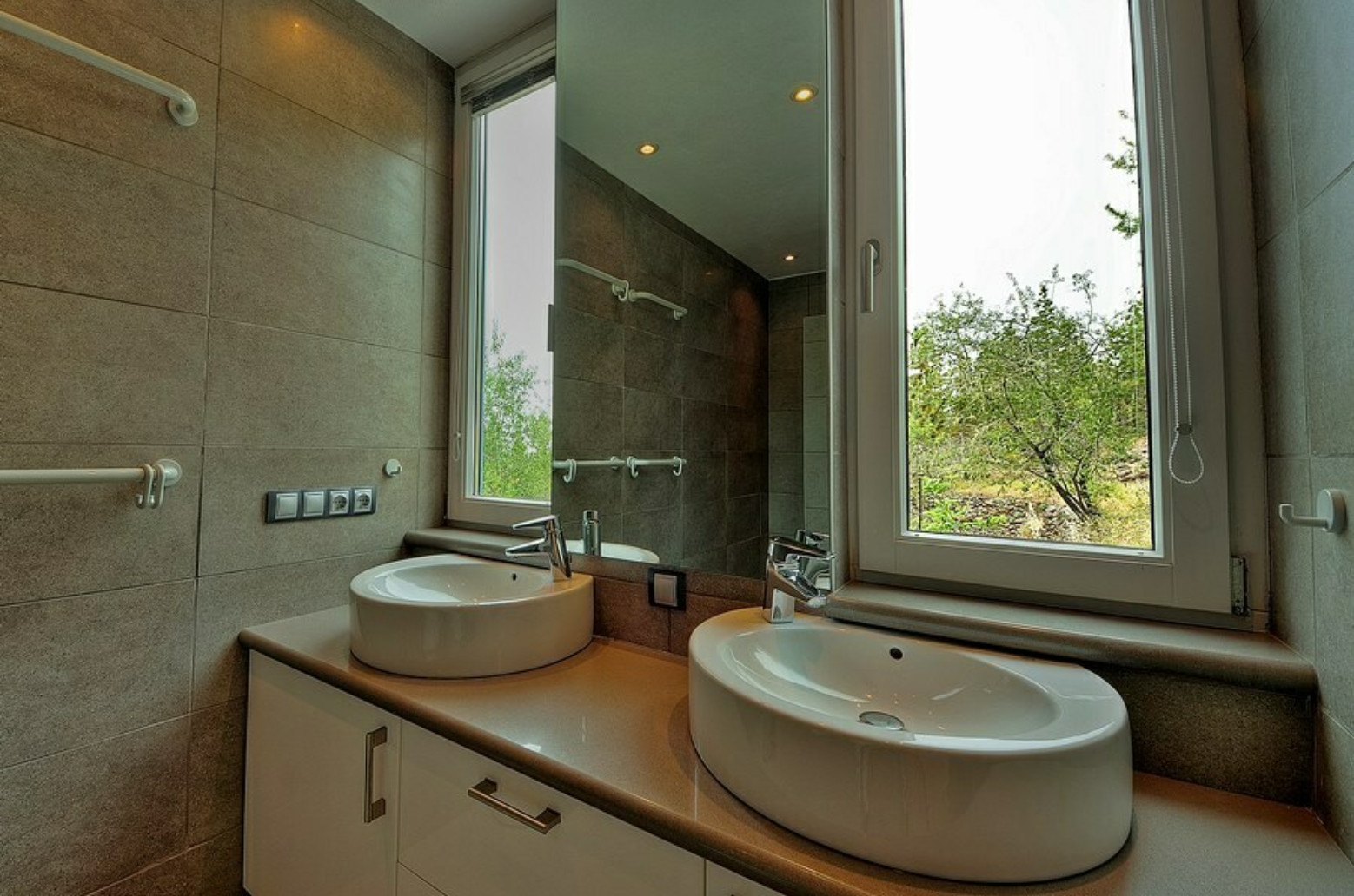 On the upper floor is the living room. The living room has a beautiful wooden ceiling, modern fireplace, enormous bookcase, two leather sofas, a luxury armchair, satellite television and stereo system. From the living room you can step directly onto the balcony with a view over the sea. The kitchen is modern and includes a dishwasher, 4-burner electric hob, two refrigerators, oven, microwave, Nespresso machine, coffee maker etc. Upon entering the upper floor, three bedrooms and two bathrooms are located to your right. The three bedrooms each have a double bed, sufficient storage space and access to the outdoor terrace. Both bathrooms have a rain shower, two washbasins, a hairdryer and a toilet. On the ground floor, a washing machine and dryer are available. Also located on this floor is a fourth bedroom with a double bed and a bathroom with shower, toilet and washbasin. Moreover, there is a sauna here. Furthermore, the entire villa is equipped with wifi and underfloor heating.