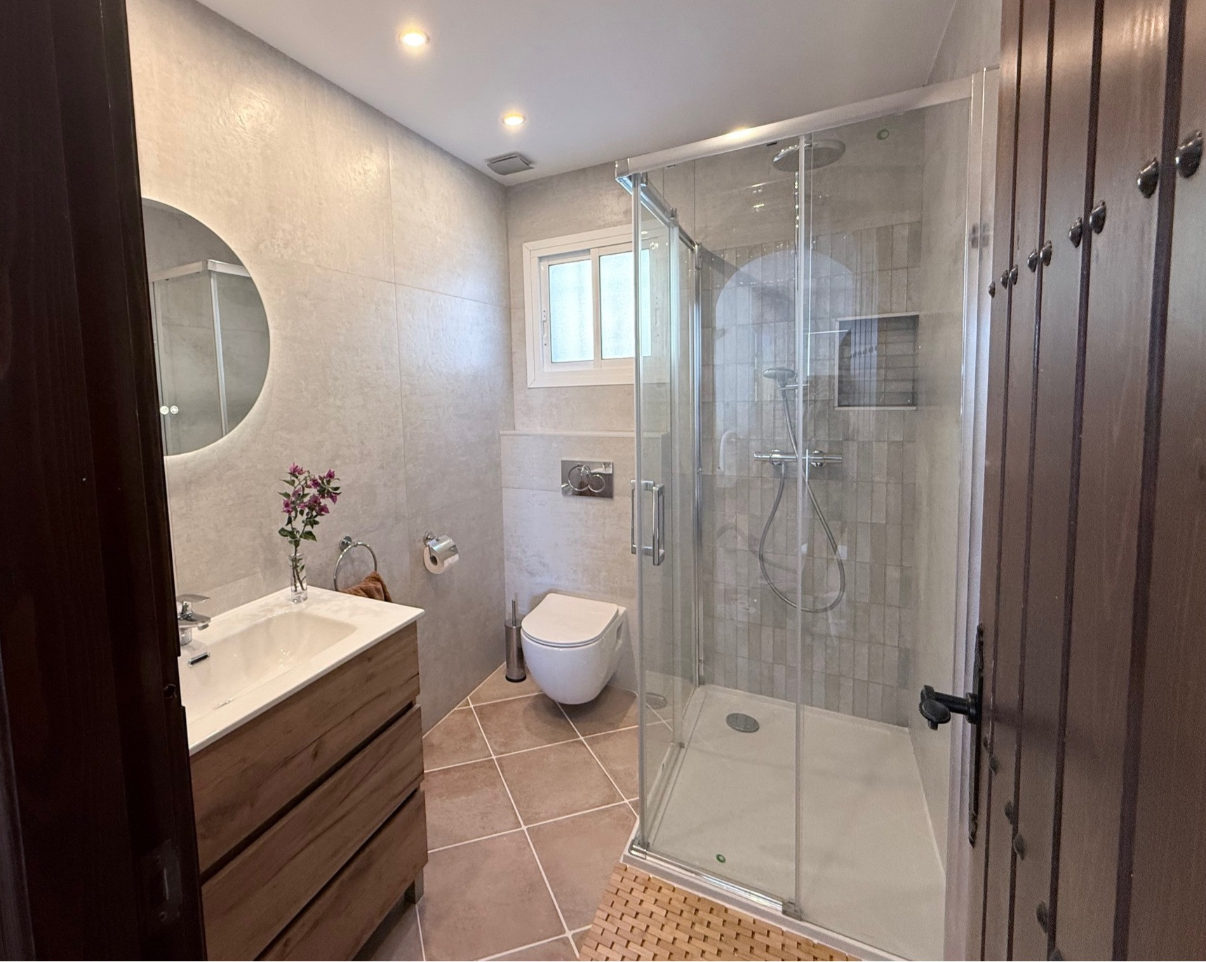 Villa Regazo Andaluz consists of two floors. On the ground floor is the cosy living room with television (with NL/DU/EN TV), bluetooth speaker, dining area, sitting area and air conditioning. The open kitchen includes a fridge, freezer, microwave, dishwasher, oven, 4-burner gas cooker, juicer, toaster, kettle and coffee maker (filter and Nespresso). On the ground floor is a bedroom with two single beds (90x200) and a second bedroom with double bed (160x200) and air conditioning. The bathroom on the ground floor has a shower, sink, toilet and hairdryer. On the first floor is the third bedroom with double bed (180x200), air conditioning and direct access to the balcony overlooking the sea. The second bathroom has a bath with shower over it, toilet, basin and hairdryer. There is a washing machine as well as a powerful wifi signal via Starlink. Villa Regazo Andaluz is perfect for workations as well. Heating: the fireplace (wood stove) heats well, there is also air conditioning (hot/cold).
